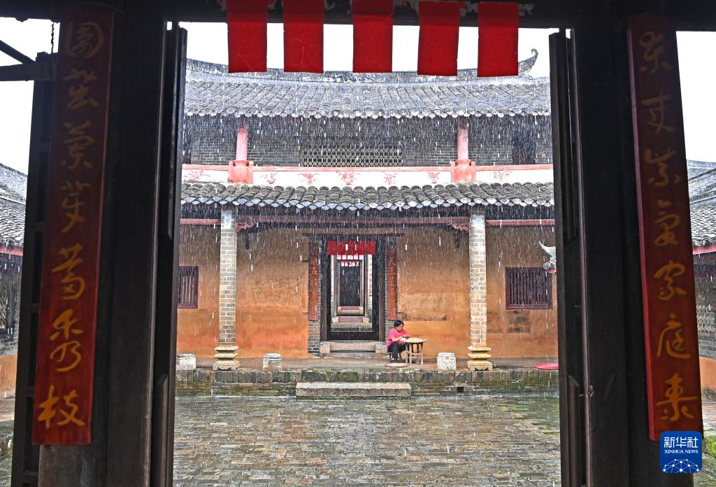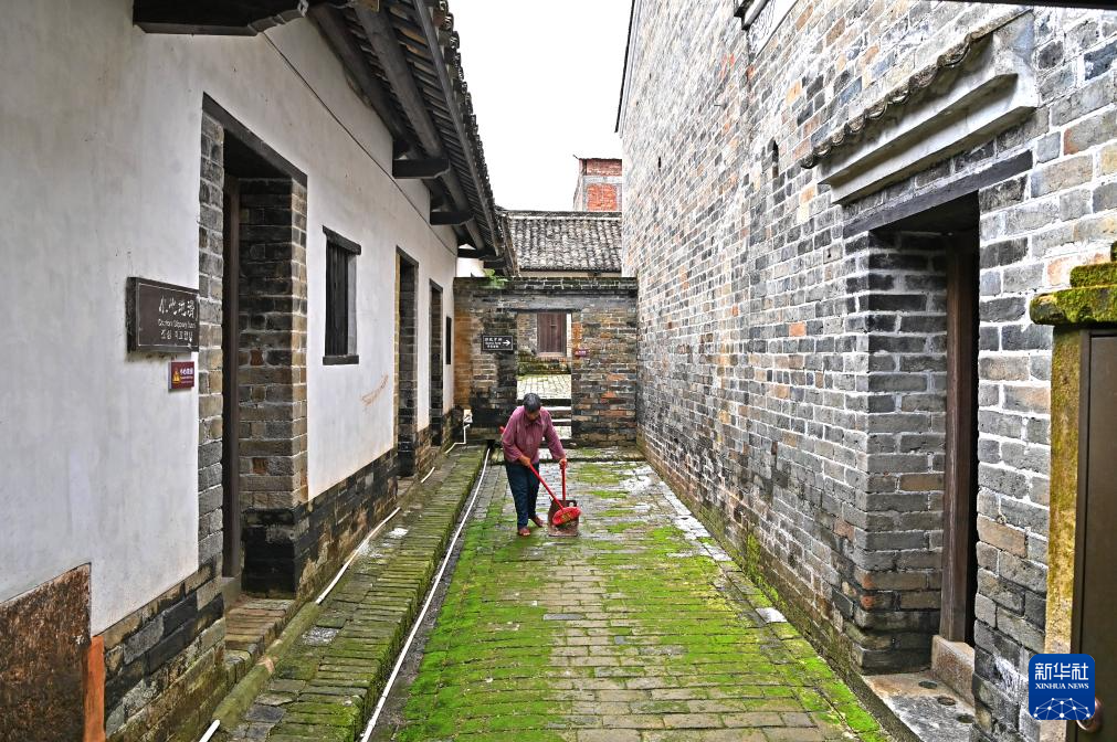 8月15日,一名村民在大芦村古宅里打扫。