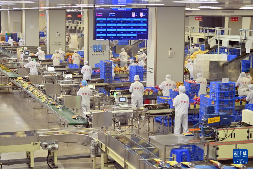 在广西螺霸王食品科技有限公司生产车间,工人在包装产品(9月9日摄)。