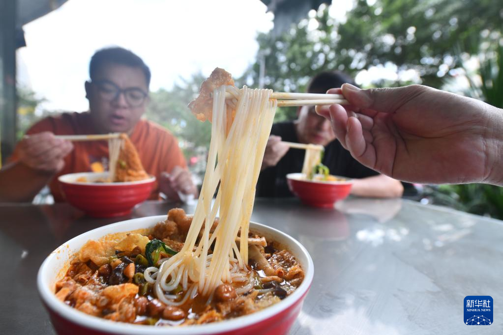 在柳州市一家螺蛳粉店,市民在吃螺蛳粉(9月14日摄)。