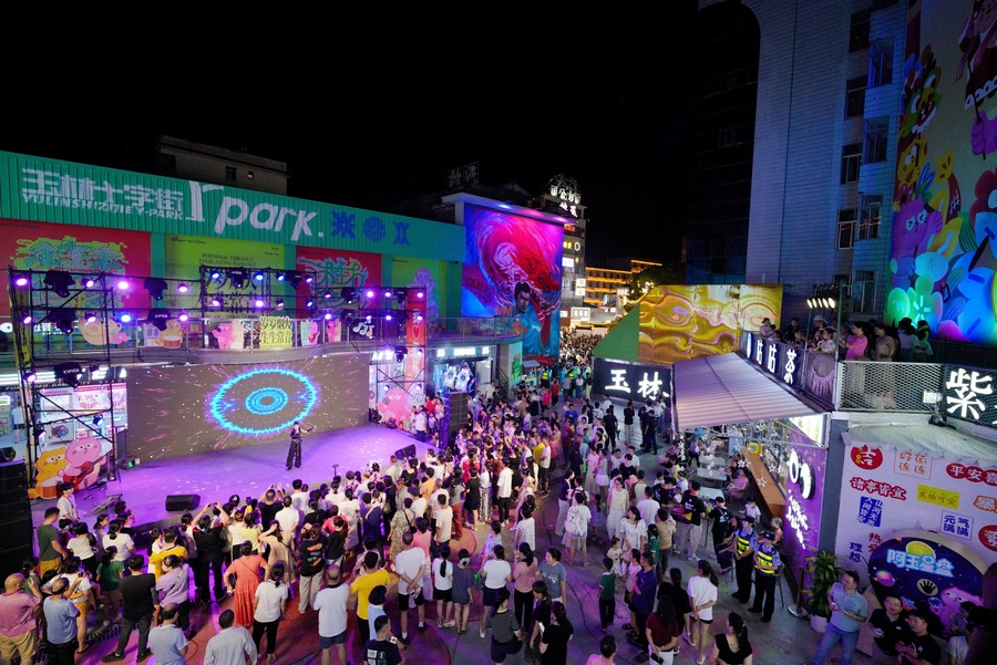 9月19日晚,玉林十字街灯火璀璨,第三届玉林十字街城事文化艺术季启幕。艺术季以“岁岁烟火・生生常青”为主题,包含艺术展览、街头演艺、商业联动等系列活动,活动将持续到11月。