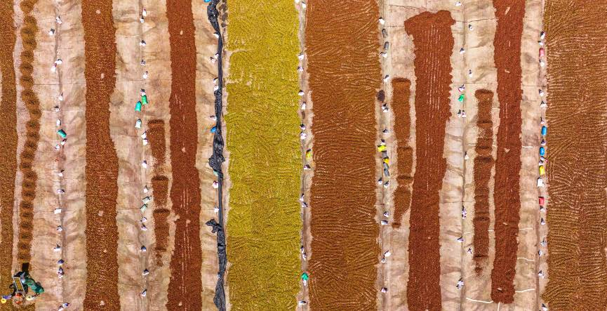 近日,在广西容县石寨镇大荣村,容县耀馨农副产品有限公司八角晒场上一片繁忙。该公司正抢抓晴好天气,加工秋季收获的大红八角。