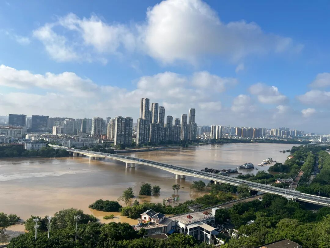 郁江2025年第1号洪水洪峰正在通过南宁。10月4日3时30分,郁江南宁水文站出现76.35米的洪峰水位(警戒水位73.0米),超警3.35米,流量12000立方米每秒。