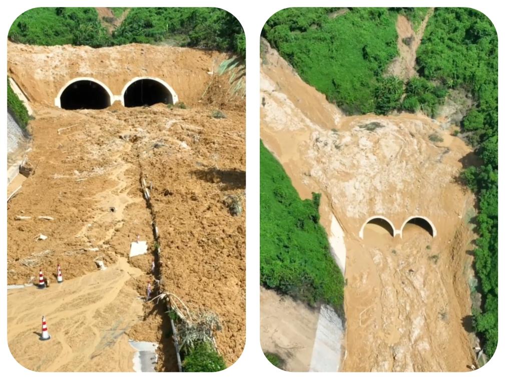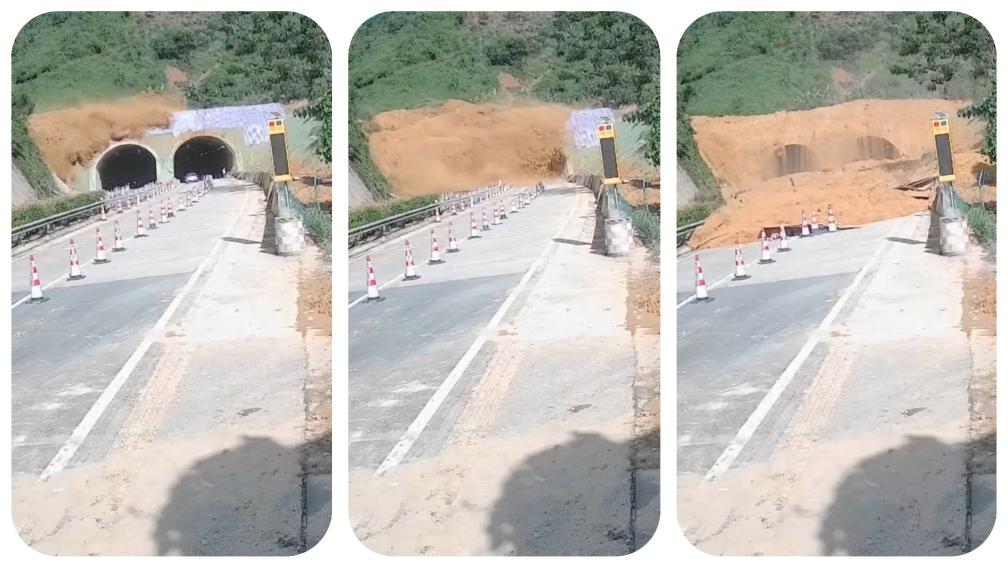 受连日来强降雨影响,10月4日、8日,广西南友高速六尖山隧道两次发生山体滑坡,导致道路阻断。