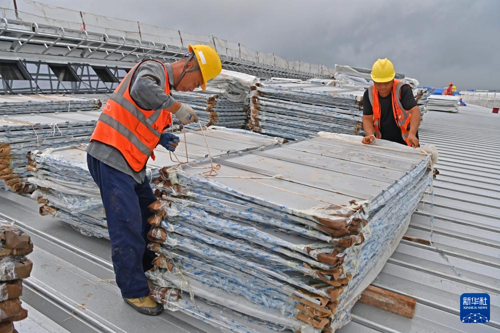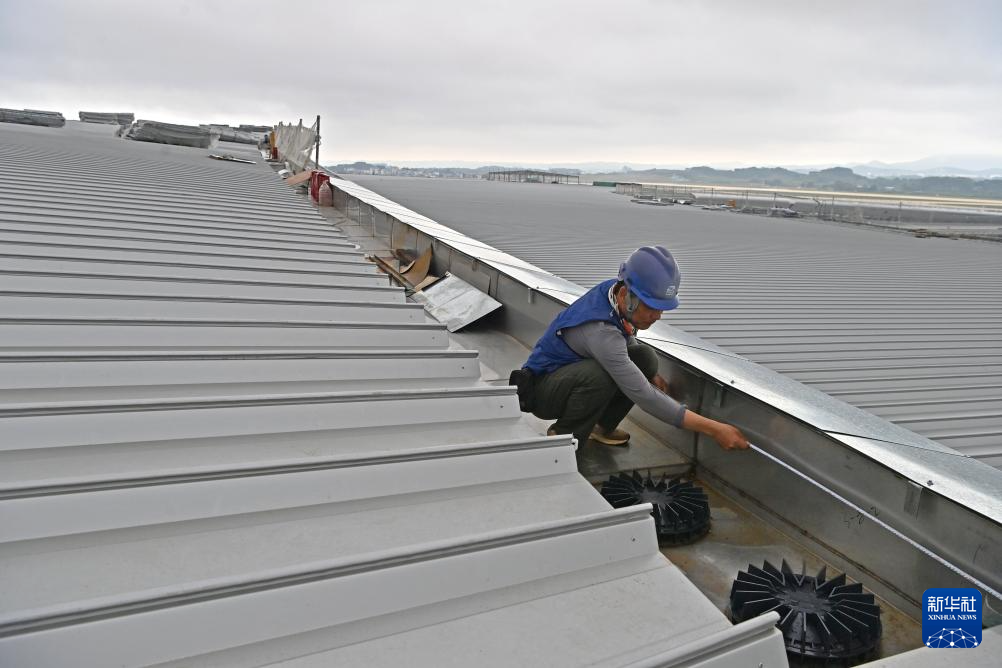 南宁吴圩国际机场T3航站楼二标段完成金属屋面铺装-新华网