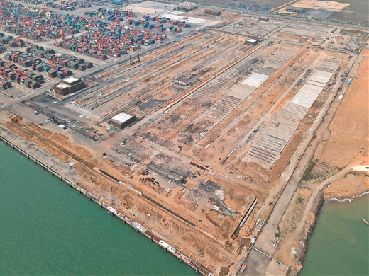 2021年4月,建设中的钦州自动化集装箱码头一期工程。