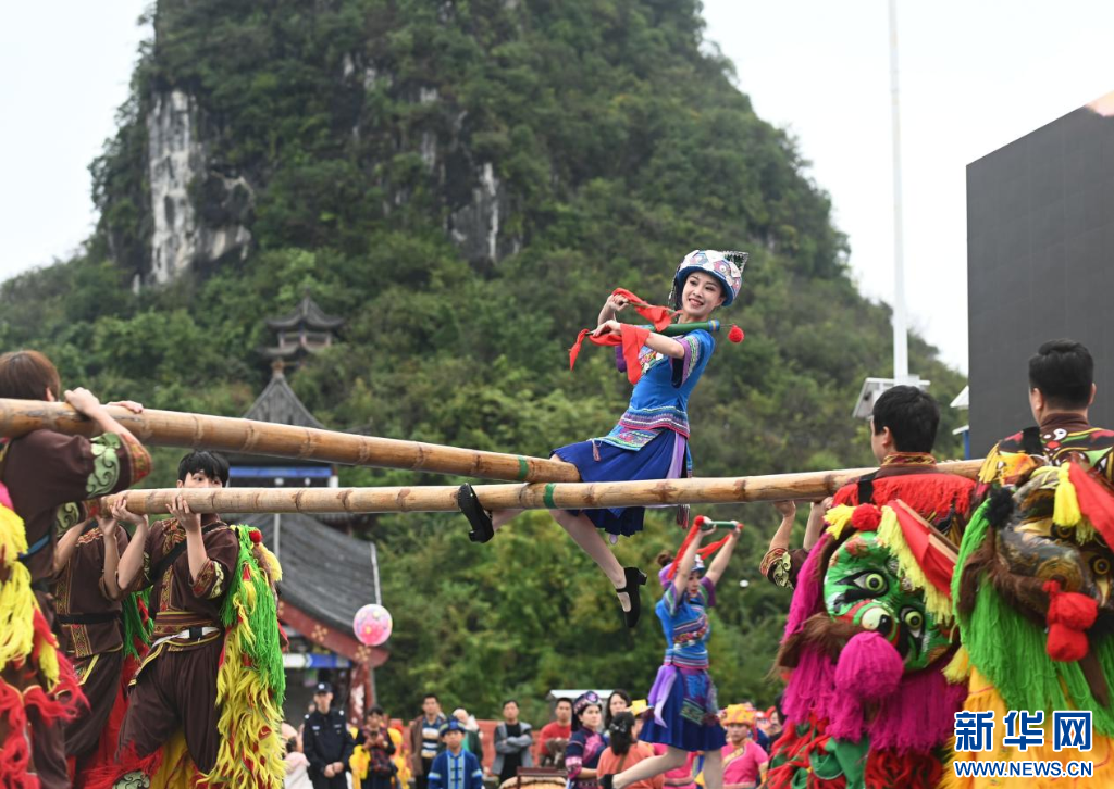 在体育中心,一场别开生面的“同心圆”集体舞蹈激情上演。在被称为“仫佬族橄榄球”的抢竹球比赛中,球员们通过牵扯绸带施展技巧,运用拉、抢、护、传、投等方式展开激烈争夺。“我觉得这个比赛非常好玩,之前从来没参加过。我还投进了一次球,下次一定要推荐朋友来。”外国博主亚历克斯兴奋地说。