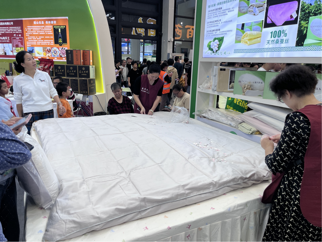 展会期间,在河池市综合展区,工作人员现场制作桑蚕丝被,推出巴马香猪、板栗等特色免费品尝食品,吸引大量消费者和采购商到场观摩、洽谈。河池展团还积极参加智慧农业创新大会、农业产业链招商推介等活动,成功签约总投资2.48亿元的河池畜禽养殖屠宰全产业链绿色智能深加工及冷链物流配送一体化项目。
