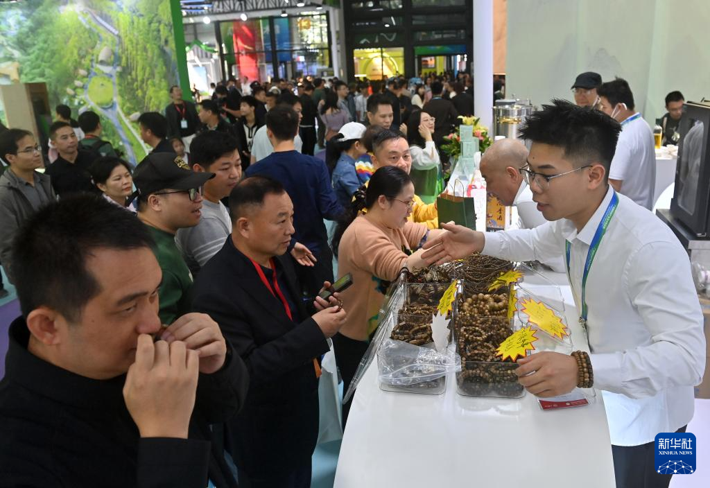 11月22日,在广西南宁国际会展中心,人们在展览现场参观选购。