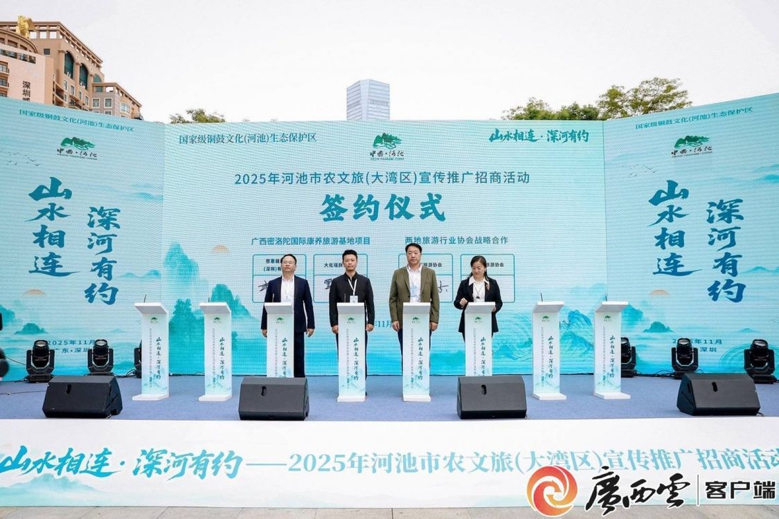 此次“山水相连·深河有约”2025年河池市农文旅(大湾区)宣传推广招商活动的成功举办,不仅搭建了河池与大湾区农文旅交流合作的新桥梁,也为推动两地资源共享、市场共建、客源互送奠定了坚实基础,将有力促进河池农文旅品牌在大湾区的知名度和美誉度提升,助力河池打造成为大湾区游客向往的生态康养、小众秘境和文化体验目的地。