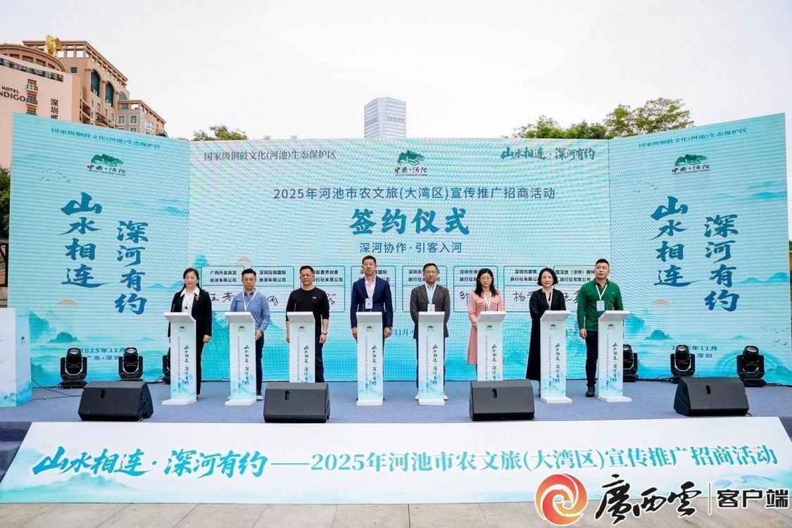 自2016年粤桂东西部协作启动以来,深圳与河池对口协作关系不断深化,双方合作从产业扶贫、民生改善逐步拓展至生态康养、非遗传承等农文旅融合领域,持续推动资源共享与市场共拓。此次活动是河池市委、市人民政府深入贯彻落实习近平总书记关于深化东西部协作和把广西打造成为粤港澳大湾区重要战略腹地的重要指示精神,贯彻落实2025年粤桂东西部协作联席会议精神的具体举措,旨在深化粤桂东西部协作和“引客入河”,进一步加大河池农文旅品牌宣传力度,提升河池农文旅品牌影响力,推动农文旅活动进商圈,推进深圳、河池两地交流互鉴,促进河池市农文旅产业高质量发展。