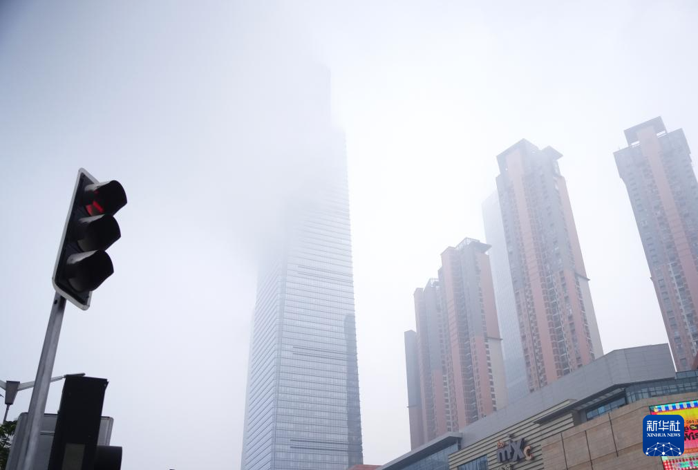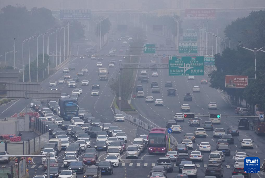 1月25日,广西南宁市遭遇雨雾天气。