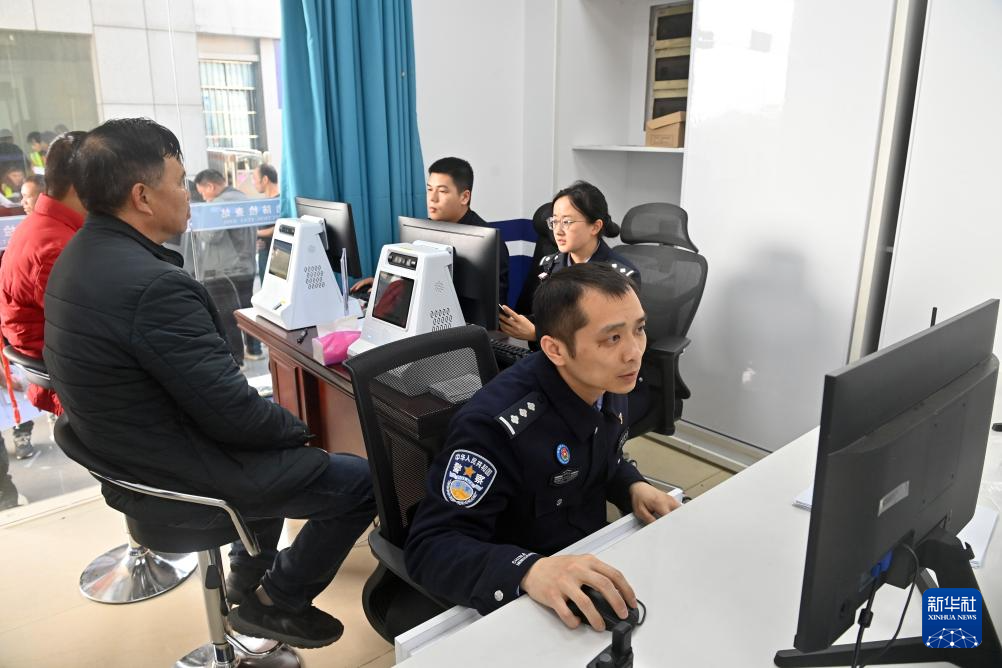 1月27日,在广西爱店口岸,工作人员帮司机将有关信息录入“快捷通”通关系统。
