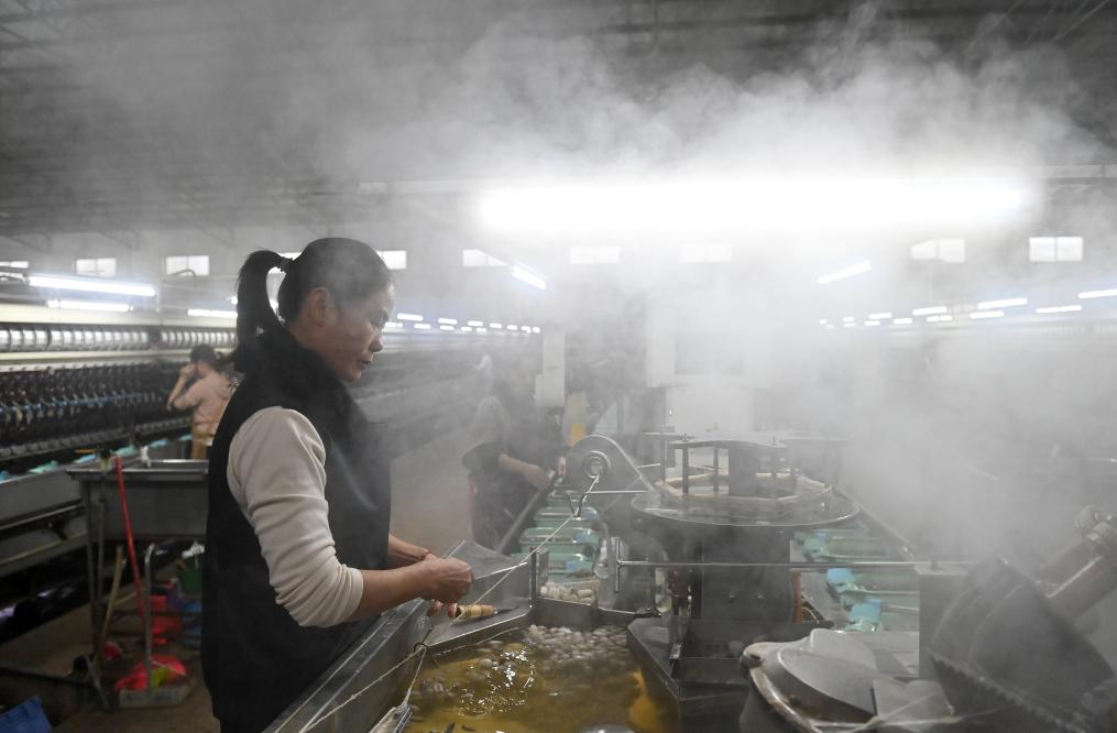 廣西忻城:絲綢企業(yè)生產(chǎn)忙
