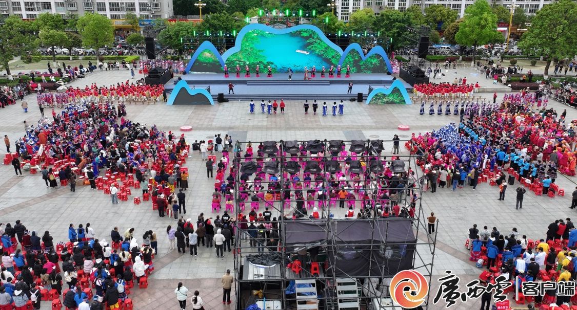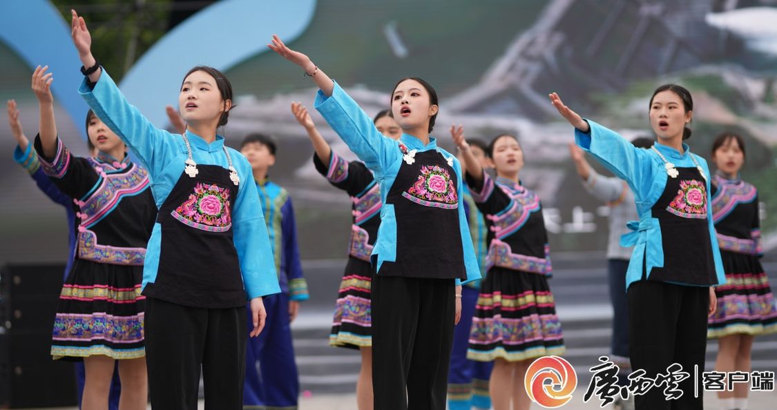活动现场,各县区拉歌方阵还现场盘歌《刘三姐“对歌”》《唱彩调》《盘歌》《采茶歌》《什么水面打跟斗》等刘三姐经典曲目,歌声此起彼伏,展现出千人拉歌、万人合唱的歌圩盛况。