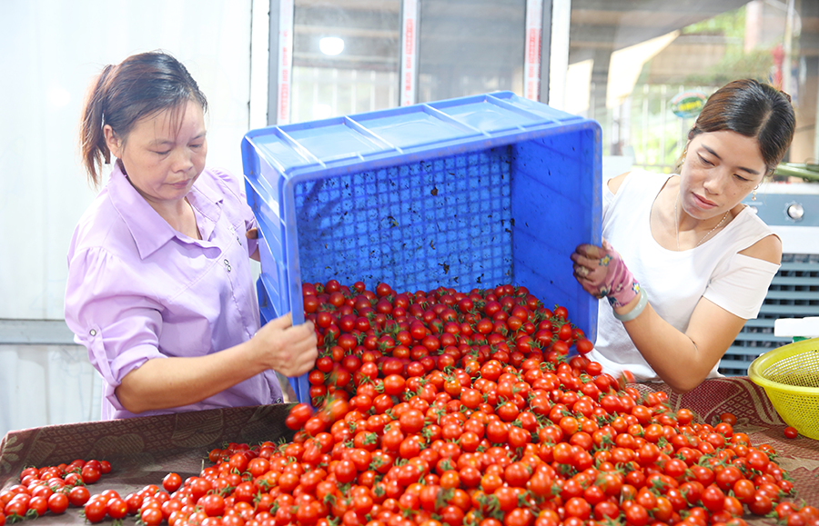 在推进产业现代化的过程中,车田苗族乡注重发挥党建引领作用,基层党组织积极协调技术服务、政策宣传和市场对接,为农户提供坚实后盾,通过“政策+技术+金融+保险”多元支撑,不断巩固农户抵御自然和市场风险的能力。同时,积极拓展西红柿深加工,发展番茄酱、冻干产品等衍生品类,进一步延伸产业链、提升附加值,为农户创造更多收益渠道。