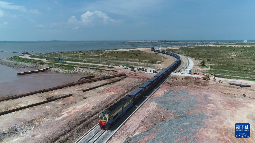 这是中新互联互通南向通道铁海联运常态化班列(北部湾—重庆)在钦州港东站首发(2017年9月28日摄)。