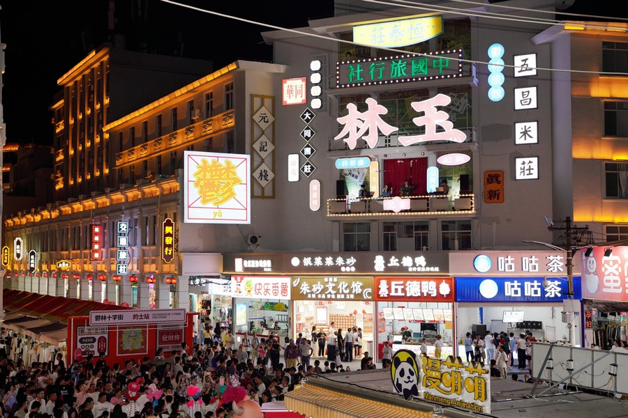 9月19日晚,玉林十字街灯火璀璨,第三届玉林十字街城事文化艺术季启幕。艺术季以“岁岁烟火・生生常青”为主题,包含艺术展览、街头演艺、商业联动等系列活动,活动将持续到11月。