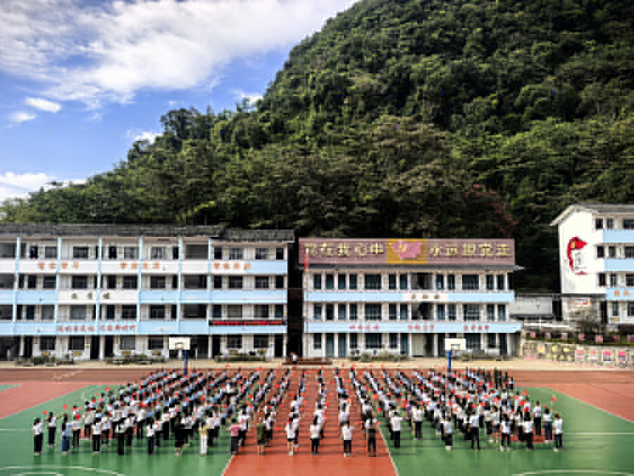 阳朔县福利镇中心小举行升旗仪式。阳朔县教育局 供图