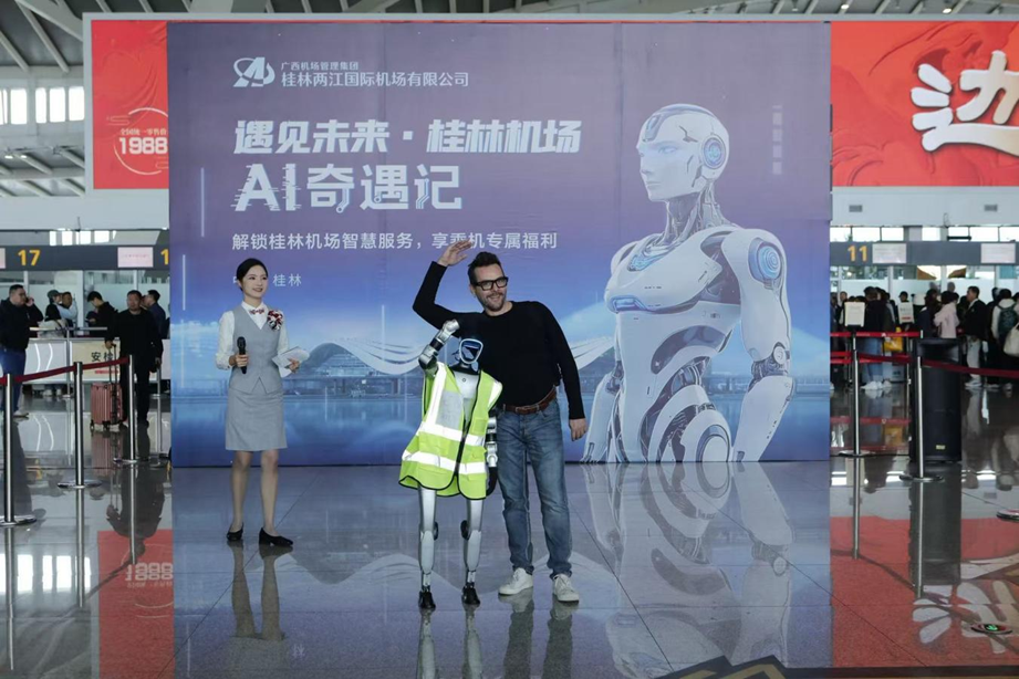 近日,桂林机场在T2航站楼举办“遇见未来・桂林机场AI奇遇记”主题活动。活动以“科技+航旅”为核心,通过AI机器狗互动、机器人表演、趣味体验等多种方式,为广大旅客带来了一场兼具科技感与实用性的航空出行新体验。
