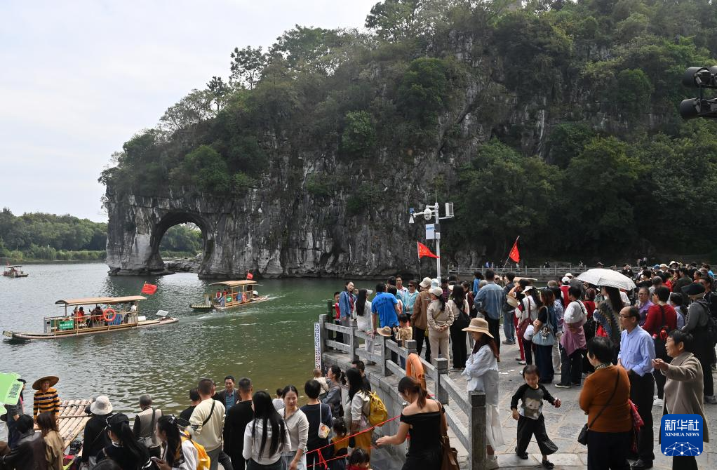 10月25日,游客在广西桂林市象鼻山游览观光。