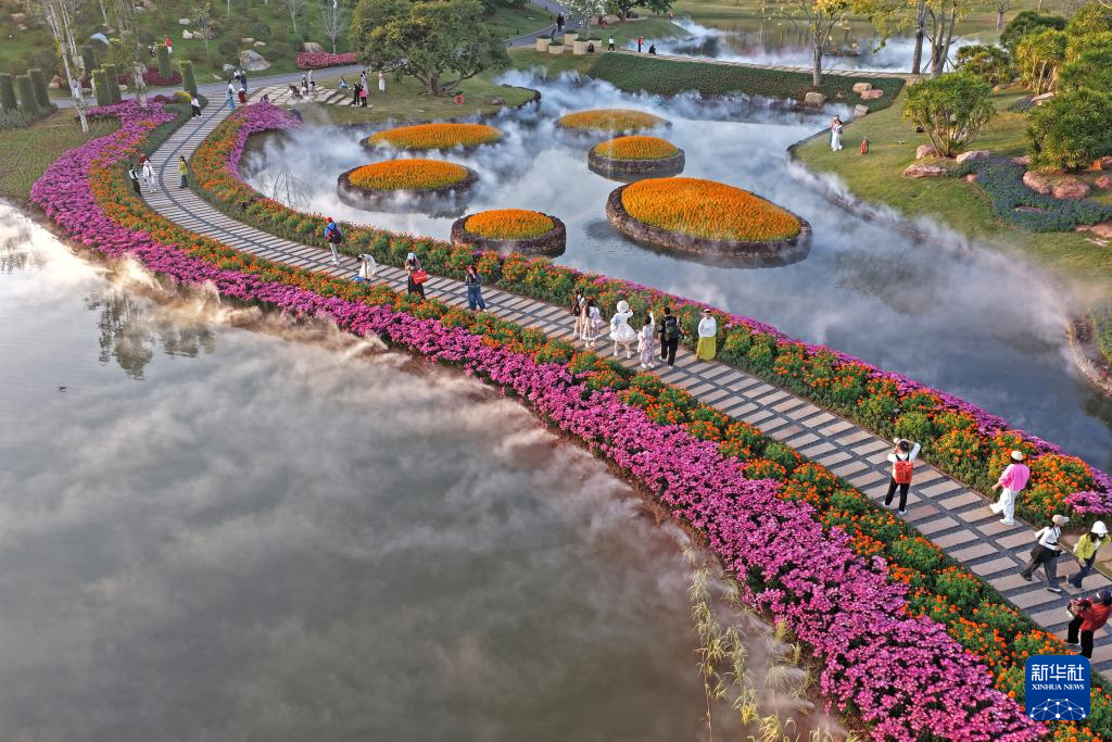 游客在广西南宁市青秀山风景区丘石花园赏花(11月26日摄,无人机照片)。